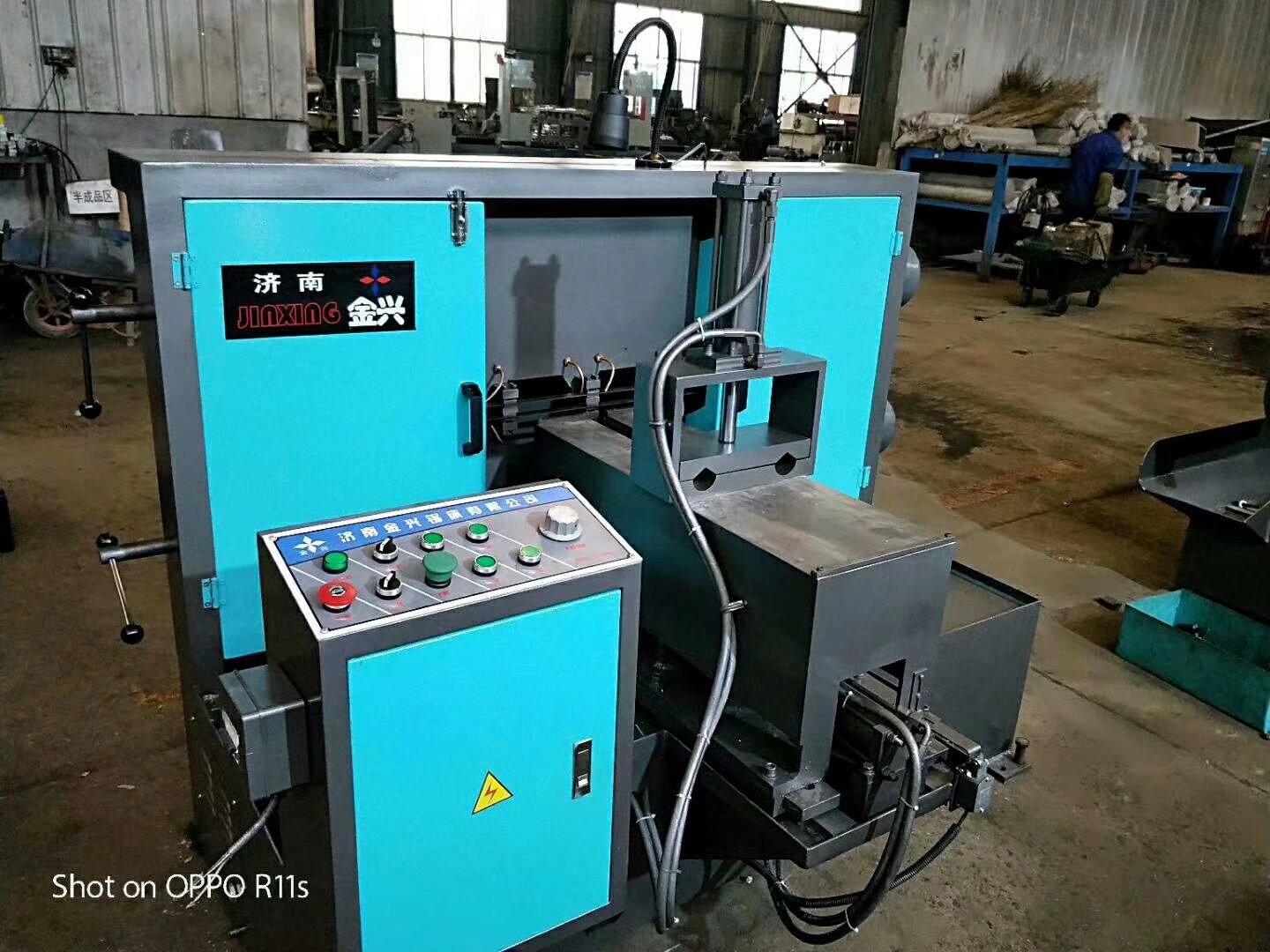 公司為章丘塔吊公司和鐵路局開發(fā)的雙鋸條帶鋸床,專門切割火車箱連接處拉桿和塔吊吊鉤的連接處!該鋸床可把工件一次性切割成為成品。免去了二次加工,為兩大行業(yè)的工作效率提高了一半,也大大減少了人工的支出。并受到了兩大行業(yè)的一致好評!
